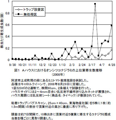 | [成果情報名] | 促成栽培ミニトマトに発生するオンシツコナジラミの黄色粘着トラップを利用した物理的防除 |