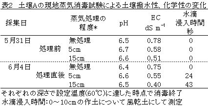 | [成果情報名] | 蒸気等熱消毒による土壌の撥水性の発現と対策 |