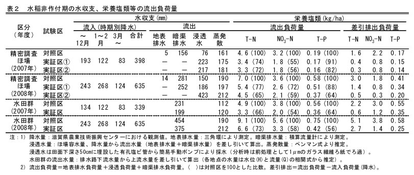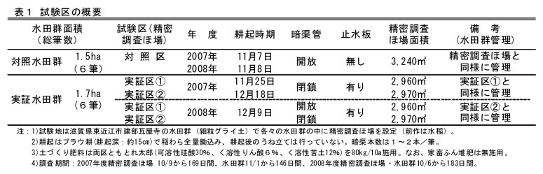 | [成果情報名] | 水稲非作付期における土壌管理法の改善による流出負荷低減効果の定量的評価 |