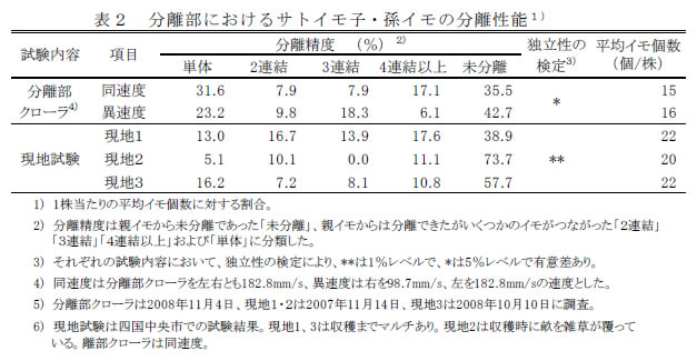 | [成果情報名] | サトイモ一工程収穫機 |