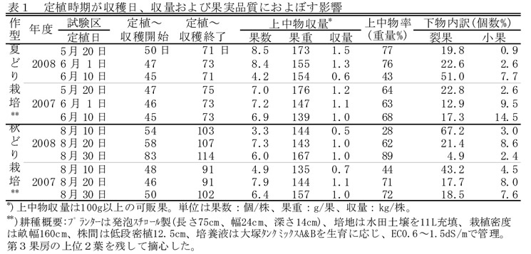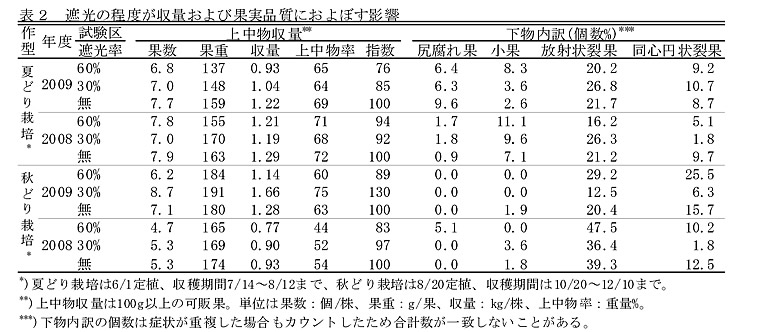 | [キーワード] | トマト、プランター栽培、3段密植、定植日、裂果、遮光、水稲育苗ハウス |