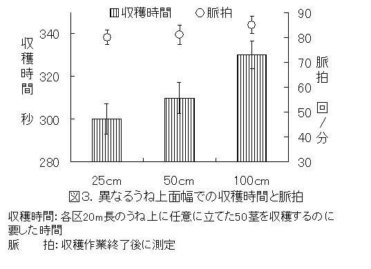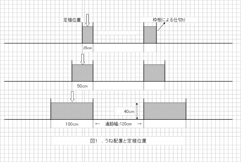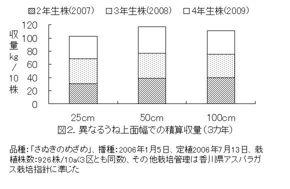 | [成果情報名] | 収量と身体負担からみたアスパラガスの枠板による高うね栽培の適切なうね上面幅 |