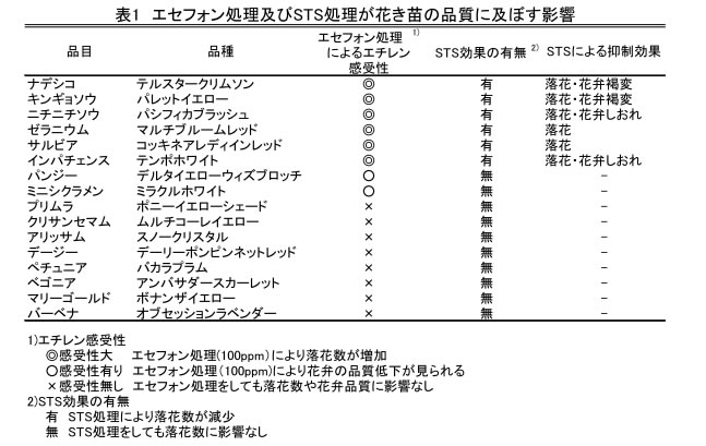 | [成果情報名] | STSの開花前処理による花き苗の落花抑制技術 |