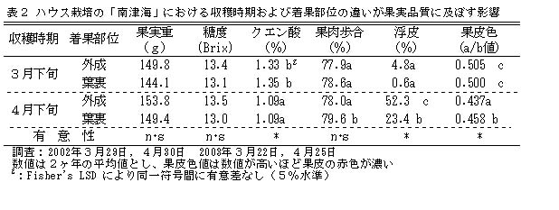| [成果情報名] | ハウス栽培と貯蔵を組み合わせた中晩柑「南津海」の端境期出荷体系 |