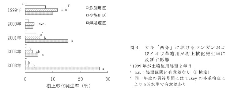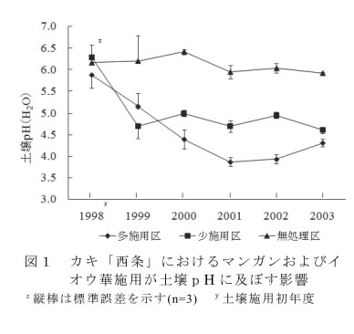 | [成果情報名] | マンガンの土壌施用とpH調整によるカキ「西条」の樹上軟化防止対策 |