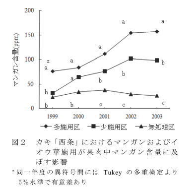 | [キーワード] | カキ「西条」、樹上軟化、マンガン、イオウ華、土壌pH |