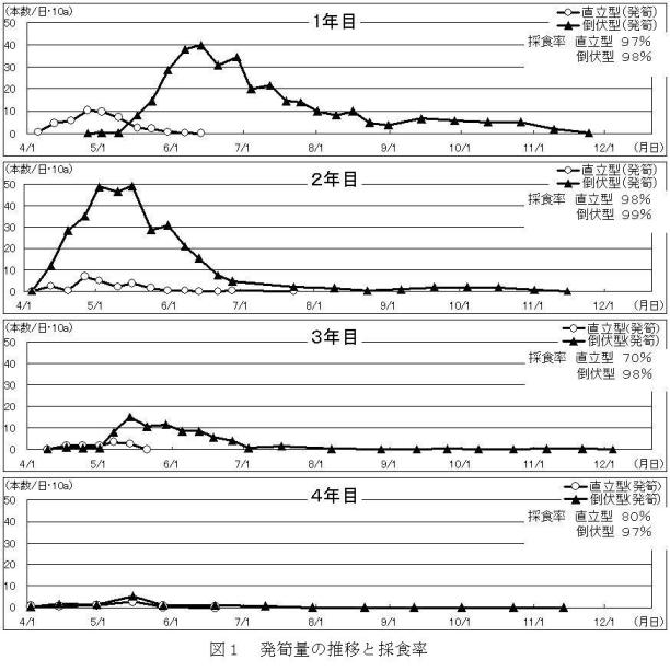 | [要約] | 皆伐後の竹林を含む里地里山エリアにおける春から晩秋までの肉用繁殖雌牛の放牧は、牛が期間中に 発生するタケノコをよく採食するので、竹林化を防止できる。 |
