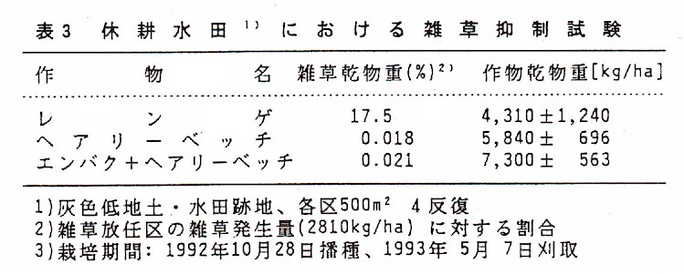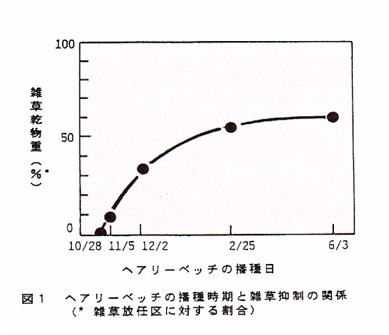 )から、ヘアリーベッチによる雑草抑制にはアレロパシーの寄与が高いと考えられる。