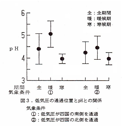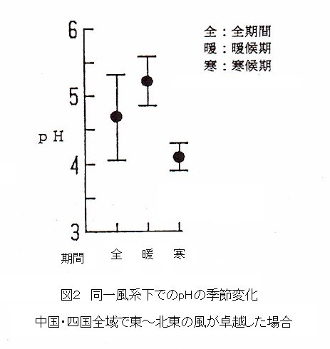 の高い降雨が降る。すなわち、酸性雨は偏西風や季節風などのマクロスケールの大気の流れに依存して季節変動を示す。