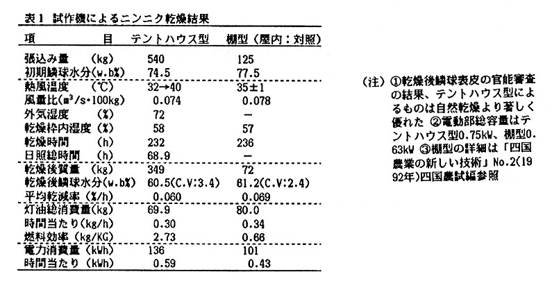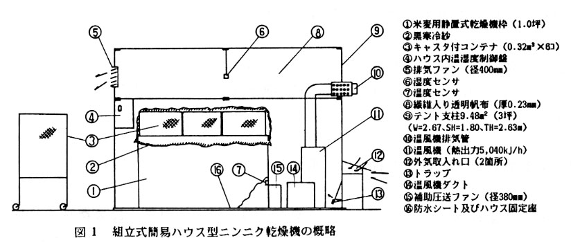 そこで、簡易な組立式テントハウスを利用したニンニク乾燥機とその利用法を開発した。