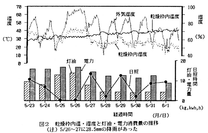 温暖地西部における早生種のニンニク栽培では収穫が5月下旬から6月上旬となり、梅雨に遭遇しやすい。このため、収穫後は人工乾燥によって品質の劣化防止と貯蔵性を確保する必要がある。生産農家の多くは増し枠を付けた稲麦用の静置式乾燥機を使っているが、熱風温度の頻繁な管理が必要であること、灯油バーナの不完全燃焼や熱風の吹抜けによる乾燥むらの発生に注意する必要があること、乾燥期間が10~15日と長く、灯油の消費量が多いことなどが問題となっている。