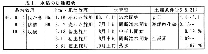 (表1)水稲の耕種概要