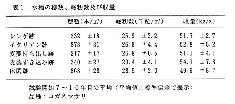 高縄半島を囲む水田地帯は、花崗岩を母材とする土壌が多いため、基盤整備により切り土をしたり下層土が混入した場合には地力が低下し、生育むらが見られたり、収量が不安定になることが多い。そこで、この地方は温暖な二毛作地帯であることから、水田裏作に栽培されている裸麦の麦藁全量すき込みを雑続したり、レンゲ(全量すき込み)やイタリアンライグラス(茎葉持ち出し)を長期作付けするなど、裏作に冬期作物を栽培し、系内有機物を有効利用することにより、地力の向上と水稲収量の安定化を目指す。