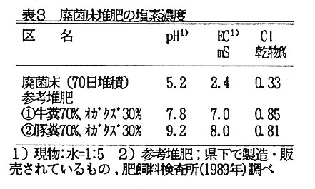)。また、塩素含有量は一般の豚糞・オガクズ堆肥や牛糞・オガクズ堆肥に比べて少ない(