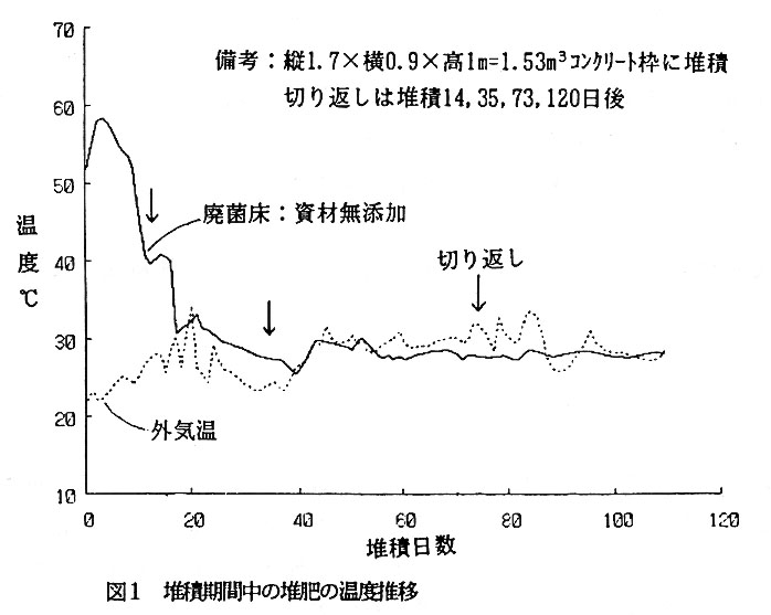 70日以上堆積させると、切り返しても範著な温度の上昇が認められなくなる(