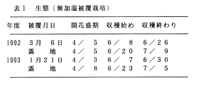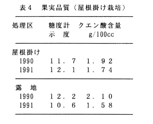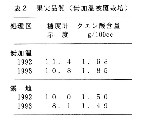特産果樹であるヤマモモは、収穫時期が梅雨にあたり雨による収穫作業及び品質に与える影響が大きい。このため、雨の影響を排除する無加温被覆やさらに簡便な屋根掛け栽培の果実品質、手採取果率の向上及び熟期の促進効果を検討する。