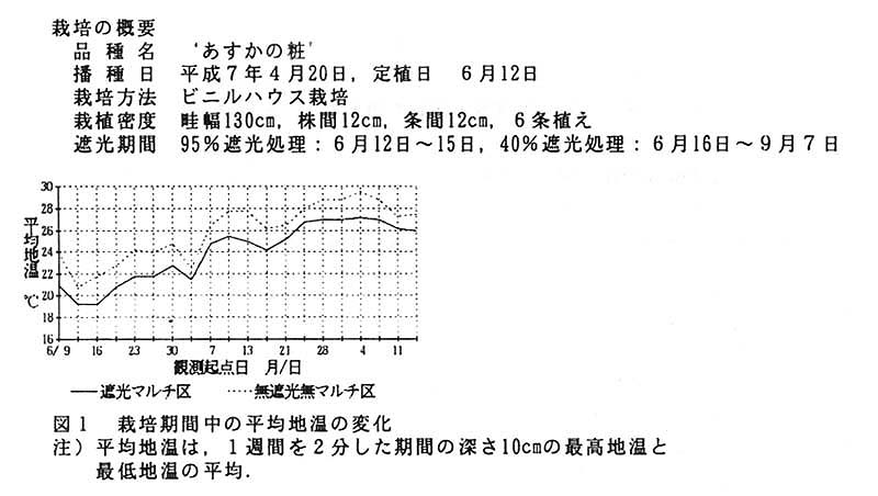 1の遮光処理を行うことで、平均地温を約2℃低く保つことができる(