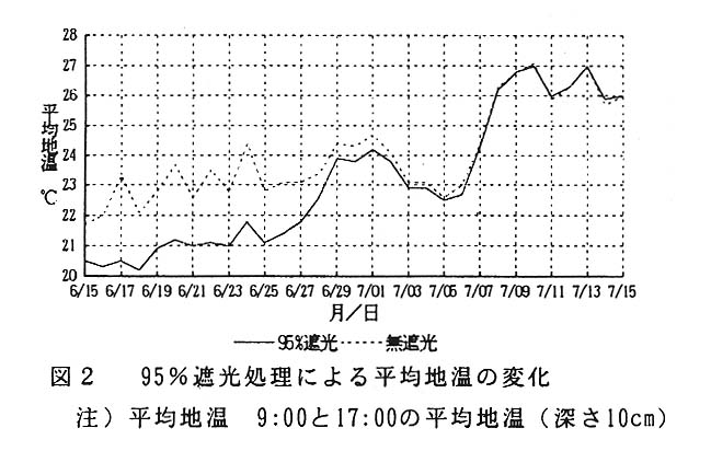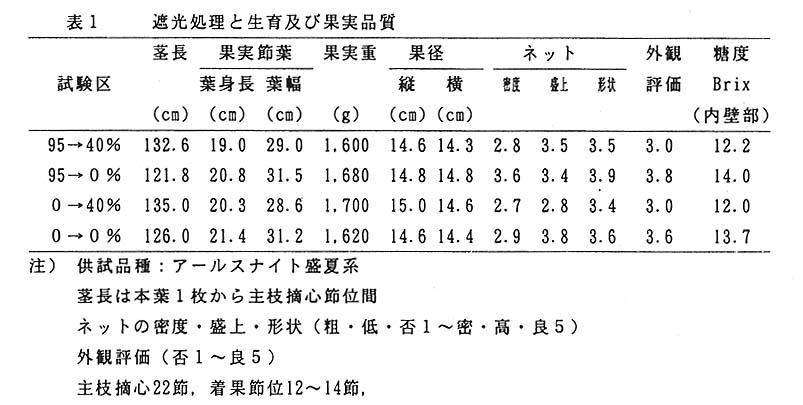 県西部のメロン栽培は6~7月どり及び10~11月どり作型が行われているが、産地が小規模なため市場対応力が弱く経営が不安定である。そこで、新たに彼岸需要を考えた9月どり作型を加え、産地の連携による出荷期間の延長を行いメロン農家の経営安定を図る。しかし、9月どりは栽培期間が高温、強日射下で行われるため、生育が不安定になりやす いので、遮光処理による地温、気温上昇を抑制し、生育の安定化による果実の高品質化を図る。