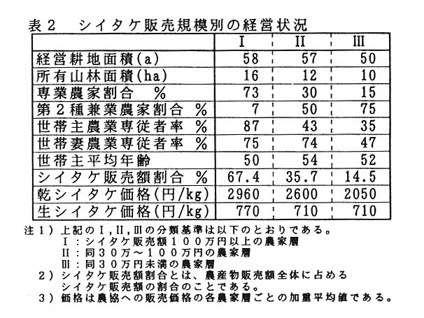 耕地条件が劣悪な四国山間地域においては、耕種部門だけでなくこれに山林を活用したシイタケ生産等を組み合わせた農林複合経営の展開を図ることが、今後の人口扶養力の維を考える上において重要な方策の1つである。そこで、統計解析及び高知県山間地域におけるシイタケ生産農家調査を通じてシイタケ生産の意義及びその定着条件について検討を行った。