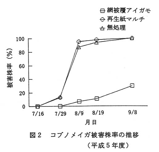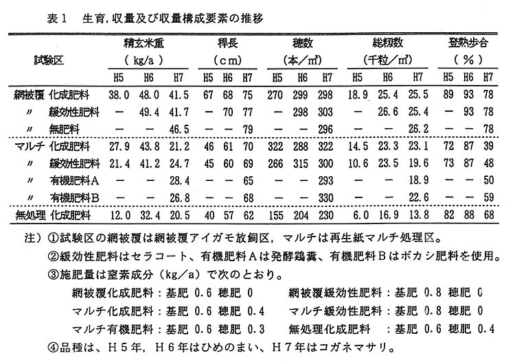 近年、環境保全型農業の推進が図られ、農薬や化学肥料を使用しない各種の農法が試みられている。それらの中に、アイガモ放飼や再生紙マルチを利用した栽培法があるが、害虫の防除が十分でない。そこで、アイガモを放飼し、さらに水田全体を網(透明寒冷紗)で覆って、害虫の被害を防止することを試みた。