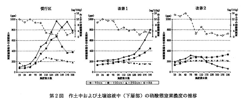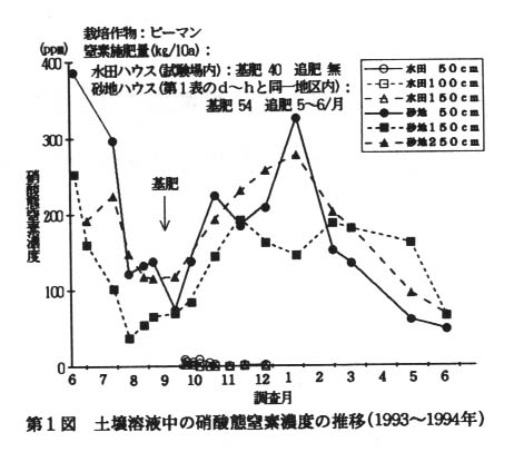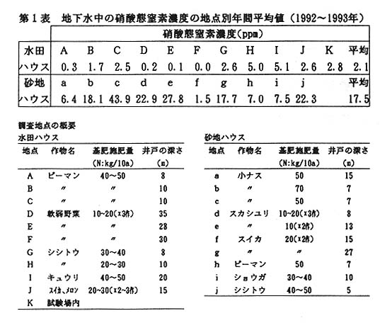 近年、硝酸態窒素による地下水の汚染が問題となってきており、その要因の1つとして農耕地からの施肥窒素の溶脱が指摘されている。高知県においても、1981~85年にかけて旧農林技術研究所が行った県下全域の農業用地下水調査(年1回)によって、海岸線に近い砂地地帯の硝酸態窒素汚染が内陸部より著しいことが指摘された。そこで、砂地ハウスと水田ハウスにおいて、農業用地下水および土壌溶液中の硝酸態窒素濃度を調査し、水質汚染の実態を把握するとともに、環境保全的観点から砂地ハウスにおける肥培管理法を検討する。