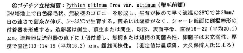 gloeosporioidesと容易に識別できる。なお、後者のベノミル耐性菌株を見分けるため、同時にジエトフェンカルブ625ppm添加PDA培地でも培養する必要がある。