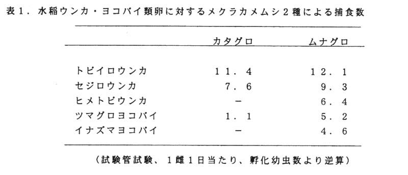 ウンカ・ヨコバイ類は水稲の害虫として重要であるが、なかでもトビイロウンカは稲作後期に坪枯れを引き起こす最重要害虫であり、その防除に殺虫剤の使用が不可欠となっている。この害虫の天敵として多くが判明している。捕食性カメムシであるカタグロミドリメクラガメ(Cyrtorhinus