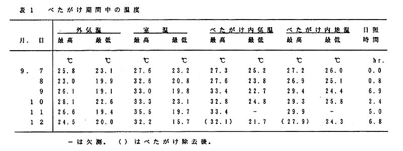 べたがけ内の気温は、最高温度が室温並み、最低温度が室温より2~3℃高くなる。(