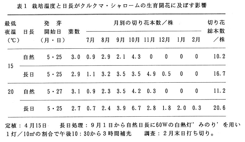 そこで、熱帯アジアに自生するショウガ科のクルクマ・シャローム(Curcuma alisuatiforia)について、その開花調節技術の関発と栽培法の早急な確立が望まれていた。