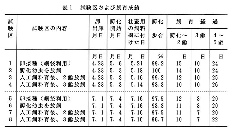 ができる。稚蚕期の滅蚕歩合がやや高いものの、全般的に飼育成績は、従来の3齢以後放飼育と比較して遜色ない。