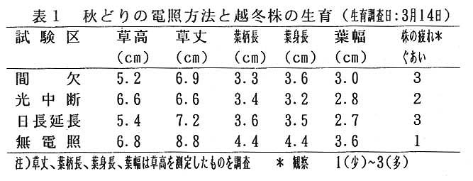 越冬株の株疲れぐあいは間欠電照、日長延長で大きく、無電照では小さい(