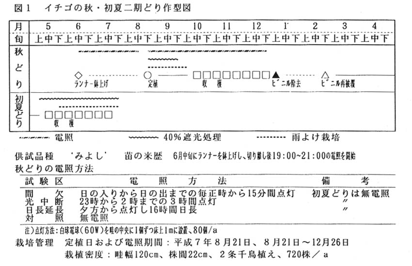 四季成り性イチゴの秋・初夏二期どり作型における電照を利用した増収技術