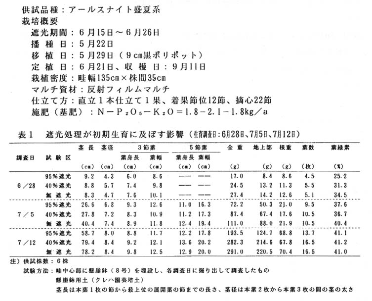 作型において、定植前後の強遮光は地上部の過剰な