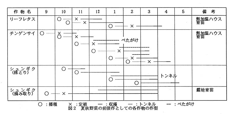 )。そこで、雨よけハウスにおける夏秋野菜の前後作に導入可能な作物を選定し、作付け体系について検討する。