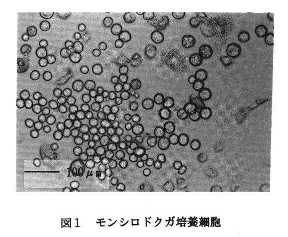 の生物防除に利用する天敵ウィルスの増殖細胞で行うため、モンシロドクガの蛹卵巣を用いて培養細胞の作出を試みた。