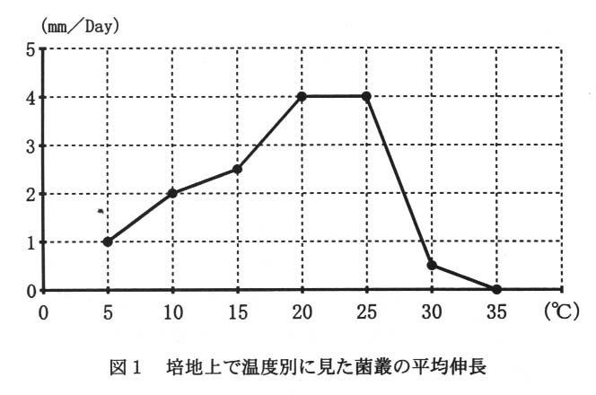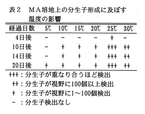 )。MA培地上での分生子形成は5~30℃で認められ、最適温度は25℃とみられる(