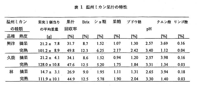 摘果ミカン果汁は完熟果汁に比べて糖含量(ショ糖、果糖、ブドウ糖)が低かったが、逆に酸含量(クエン酸、リンゴ酸)は高かった(