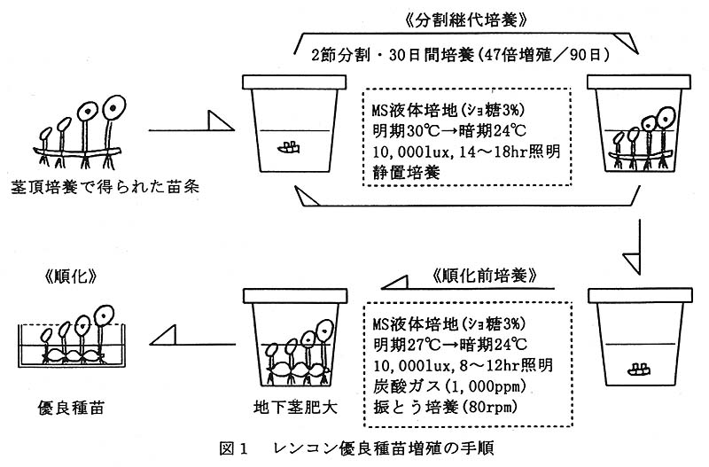 する。また8~12時間の照明下で炭酸ガス施用、振とう培養により地下茎の肥大が進み、順調に順化を行うことができる。