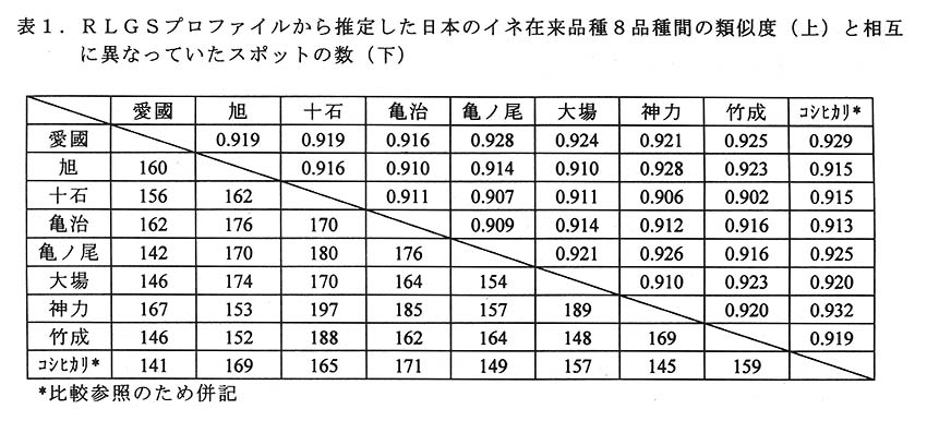 RLGS改良法(浅川1996)をイネDNAの解析のために改変し、得られたRLGSプロファイルを画像解析装置で解析する。イネDNA250ngをNot I、EcoRVで同時に消化後RIで標識化する。そのうちDNA100ngをアガロース・ゲル電気泳動(1次元目)し、ゲルのままMboIで消化し、ポリアクリルアミド・ゲル電気泳動(2次元目)する。ゲルを乾燥後オートラジオグラフィでX線フィルムに感光させる。得られたRLGSプロファイルを面像解析装置(東洋紡、解析ソフトウェアはPDI社PDQUESTver.5.1