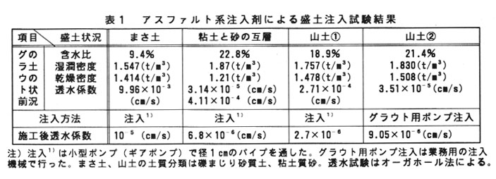 )が認められた。なお、グラウト施工した盛土の漏水量実測値は8㎜/dayとなって、十分な止水効果を認めた。
