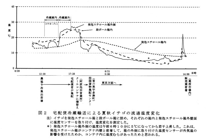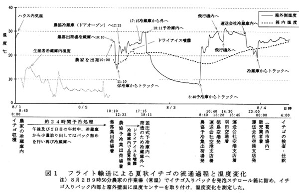 そこで、事例として、夏期にフライト輸送(航空機による輸送)により東京へ出荷されているが販売業者の検査時点での腐敗ロスが多いイチゴについて、品質低下防止のための物流体系の改善点を解明する。