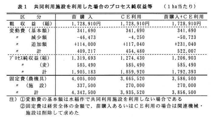 育苗センターやライスセンター、CEなど の共同利用施設が水稲・裸表作の規模拡大に及ぼす影響について、個別経営体を対象に線形計画法を用いて 検討する。