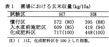 入水・代かき直前になたね油粕を施肥すると、化成肥料区よりは劣るが、慣行区に比べて玄米収量は増加する(