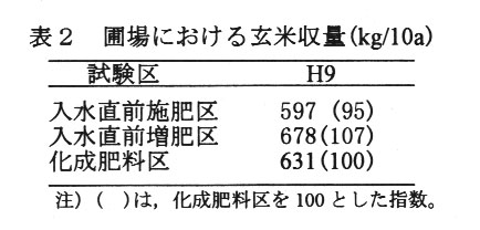 は高くなり、玄米収量も増加する。また湛水条件下におけるなたね油粕の窒素