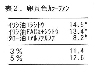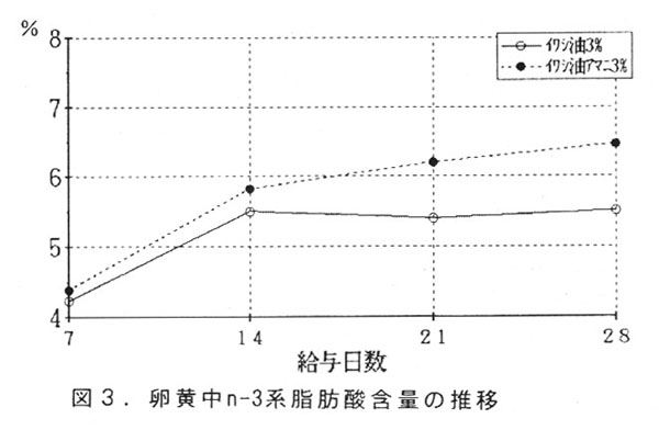 生産基盤が弱く、労働集約化の困難な中山間地域養鶏を活性化するために、小規模ながら経営可能な高付加価値型の飼養技術の確立が望まれる。一方、健康食品に対する消費者の関心は高い。そこで、動・植物性未利用資源であるイワシ油及びシシトウを利用したn-3系脂肪酸豊富な鶏卵肉の生産技術を確立する。