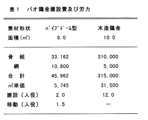 )。③このパオ鶏舎の建設費は木造鶏舎の約5分の1である(