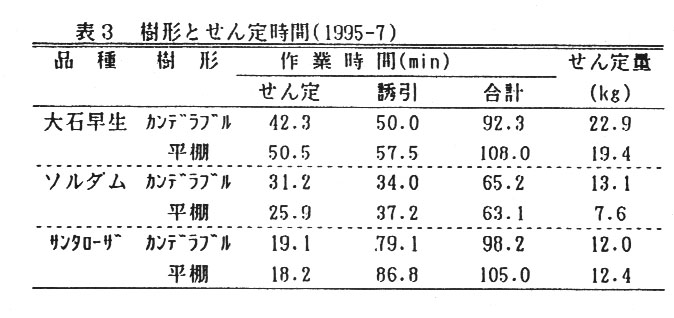 整枝せん定及び誘引の作業時間は、カンデラブル樹形と平棚と明らかな差は無い(