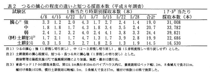 )。つるの整枝は、4~5芽残し切り戻し、4月以降は、無摘心とする(
