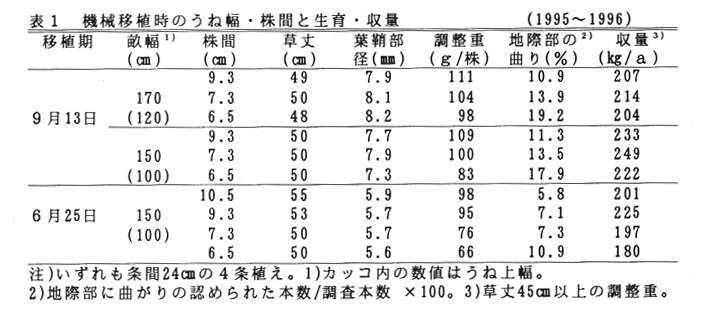 露地葉ネギの機械移植栽培法、高知農技セ研報、7号、1998