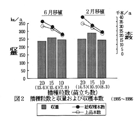 育苗日数は移植時期別に次の日数を目安とする。夏期は40日、冬期は63日、春から初夏は46日、秋から初冬は50~60日(